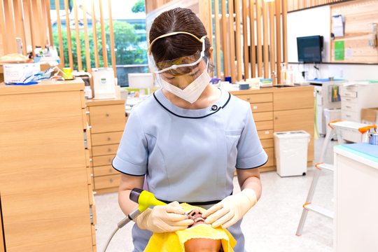 当院の予防歯科は、この分野で10年以上(※)の経験を持つ院長が担当します。予防の中心を担う歯科衛生士も、同様に経験10年以上(※)のベテランが筆頭となって、患者さまに対応します。